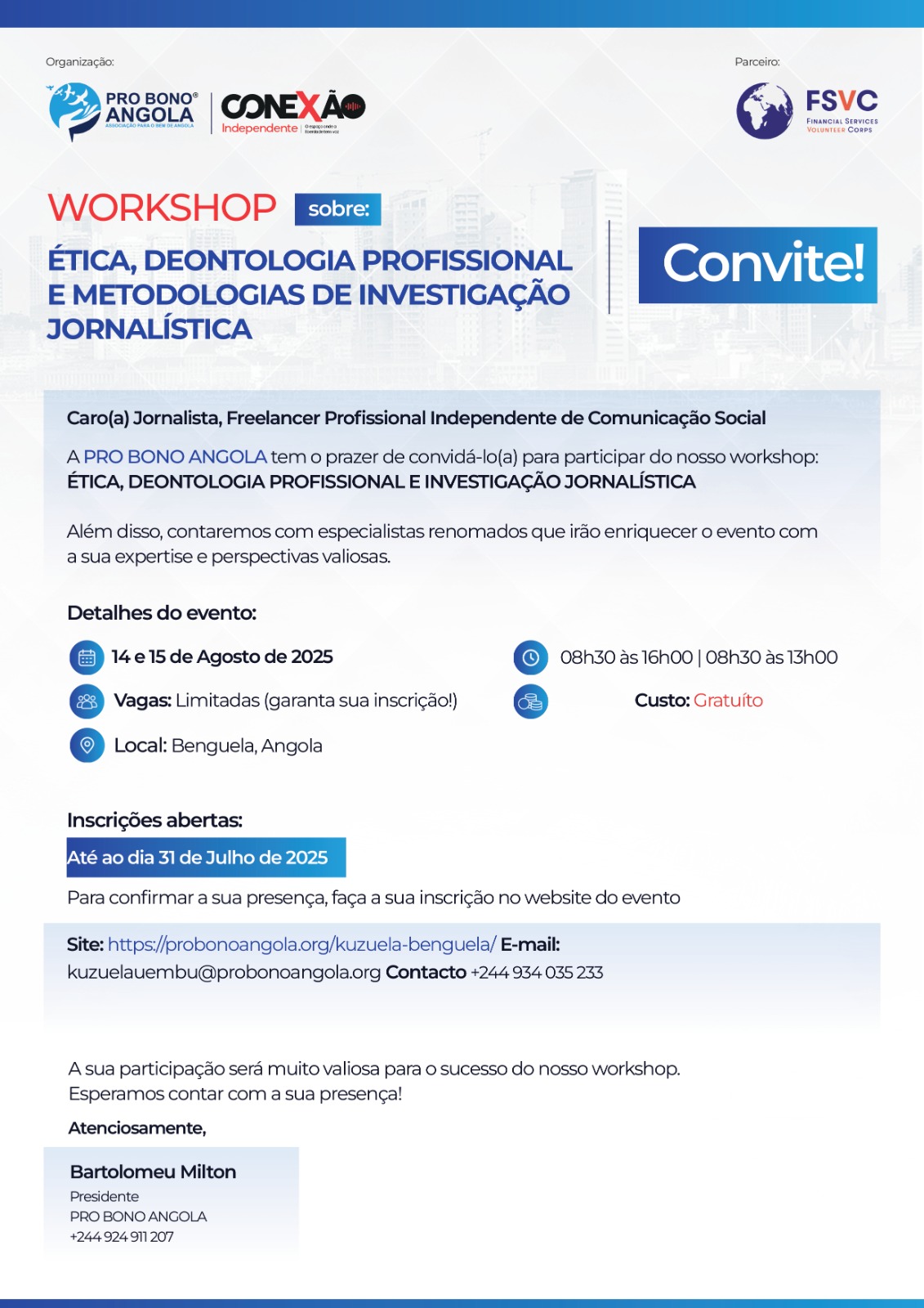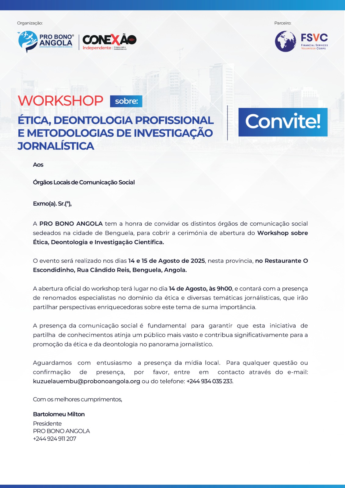 Convite aos órgãos de comunicação social